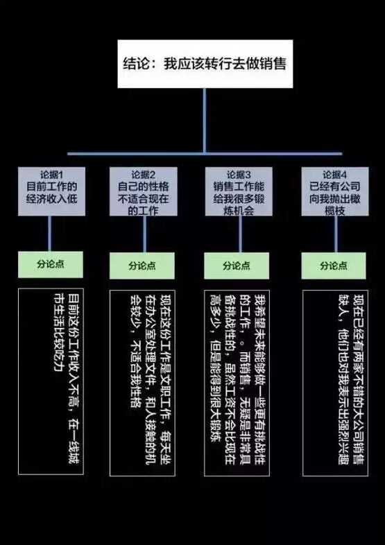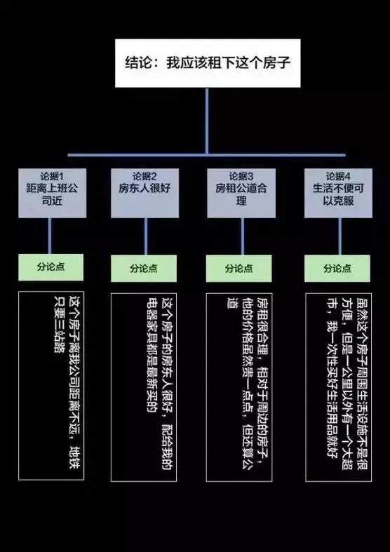 无论是谁,都会喜欢这样的陈述方法。这也是为什么,当你给领导汇报工作的时候,他们绝不可能听你长篇累牍的解释分析,他们只会听你的结论,或者解决方法。当他们有兴趣的时候,会追问细节,当他们很忙的时候,他们只需要听到最重要的东西。