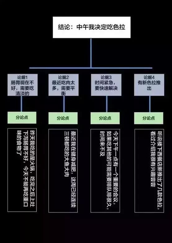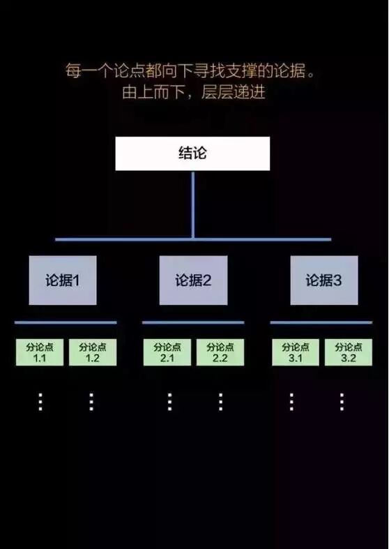 “演绎归纳和MECE”,是你的分析思考过程;“先讲结论”,是你思考完以后的表述方法。先讲结论的人,能够在一开始就抓住别人的注意力,接下来通过层层递进的方式论证结论的正确性,听众就不会迷失方向。