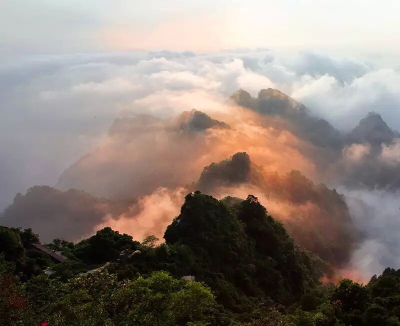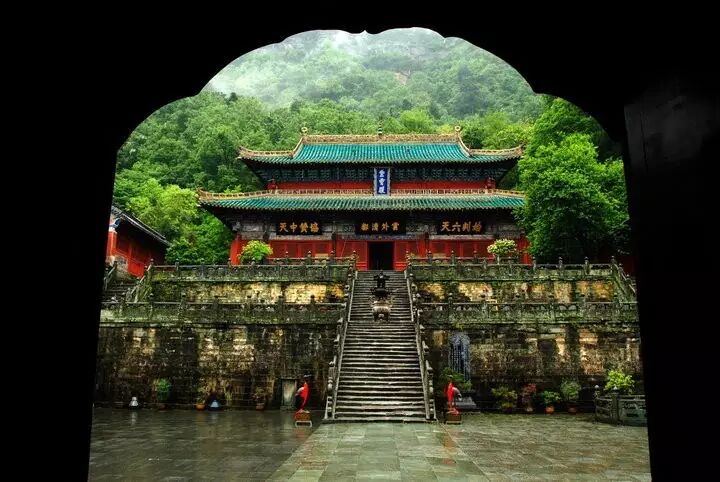 "亘古无双胜境,天下第一仙山",武当山是道教名山和武当武术的发源地。山上里面几乎没有破坏山体的建筑物,依山而建。自然山水和道教故事相融合,构成了仙山穹阁的意境。