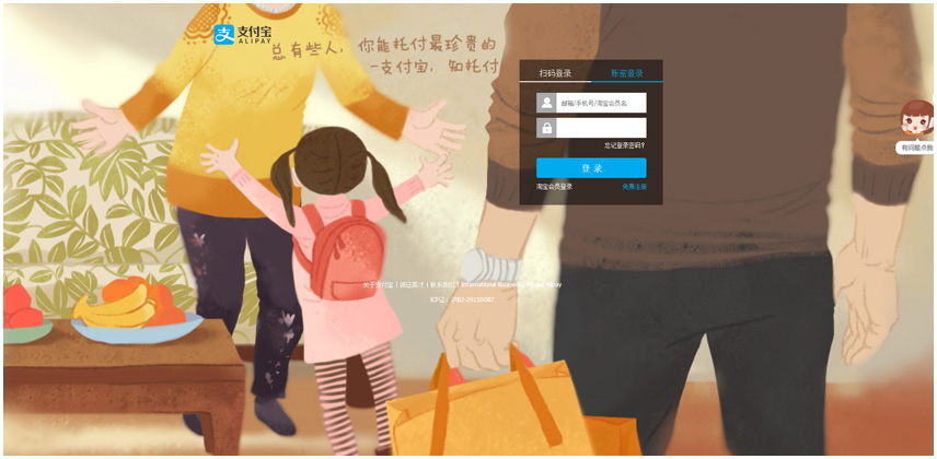 3.使用企业支付宝账号进行登录,具体企业支付宝账号的注册流程