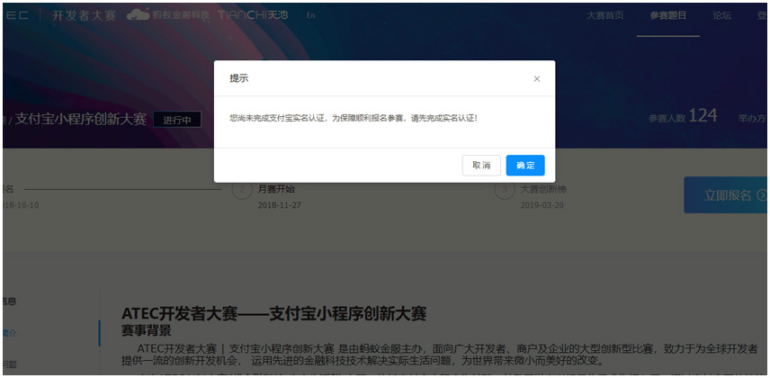 5.若未完成支付宝实名认证,则需要完成支付宝实名认证才能进行参赛。已经完成支付宝实名认证的用户可以跳过这个环节。