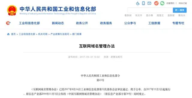 早在2017年11月,工业和信息化部在发布并实施的《互联网域名管理办法》中明确“推动中文域名和国家顶级域名发展和应用,促进中国互联网健康发展。”同年,国务院在《政府网站发展指引》中强调“政府网站要使用以.gov.cn为后缀的英文域名和符合要求的中文域名,不得使用其他后缀的英文域名”,对域名及相关中文域名的使用进行了规范和指导。