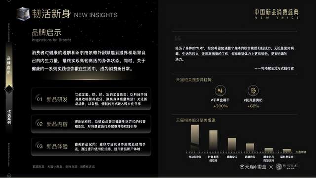 新品的爆发式增长,得益于平台与品牌成功洞察消费者的真实需求与消费场景的升级迭代,从现有数据来看,天猫已经成为品牌洞察消费趋势、孵化新品、打造爆品的首选平台。为了让品牌与消费者更全面地了解新品对社会发展、消费生活和行业前行的价值,天猫小黑盒携手睿丛咨询(RHIZOME)发布了《2023线上新品消费趋势报告》,将“新品”放置在宏观社会环境和更长的时间脉络中,通过分析新品研发、内容、体验等,提取出八大未来新品关键词,与品牌一起洞见新品战略机遇。
